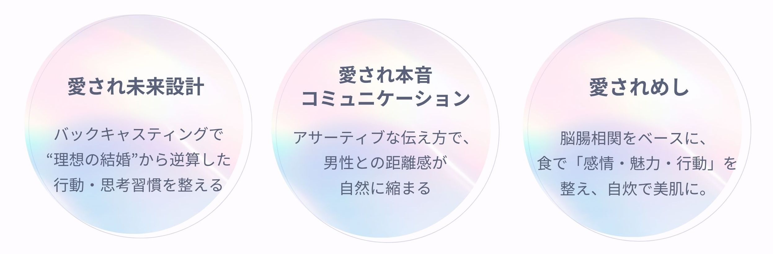 愛されめしの講座は3ヶ月間コース、6ヶ月間コース、プライベートで全てを行うプレミアムコースの3つ。